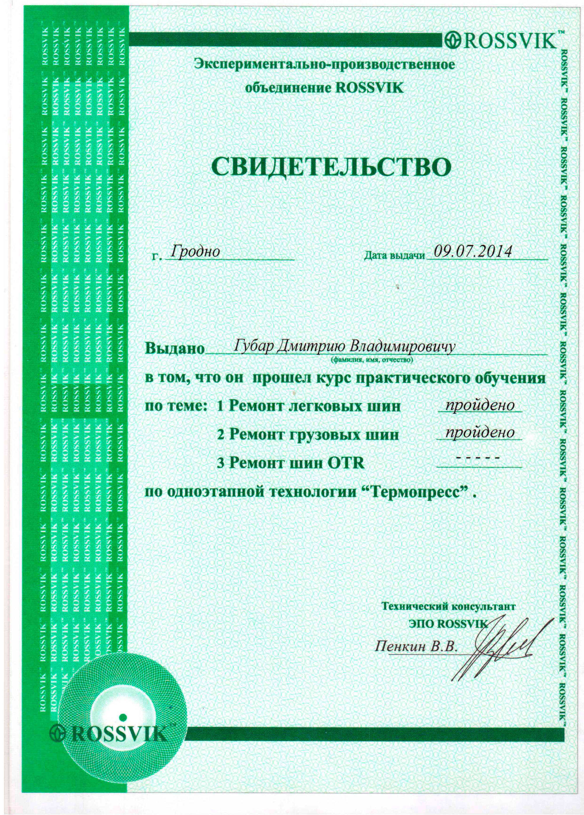 | Ремонт прокола с\х шины с использованием TL-180 | 90 руб. |